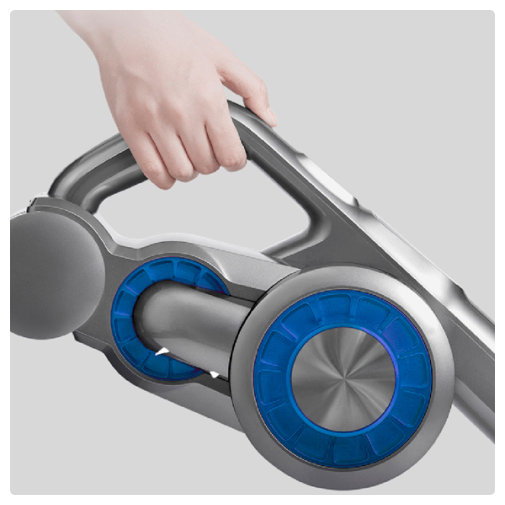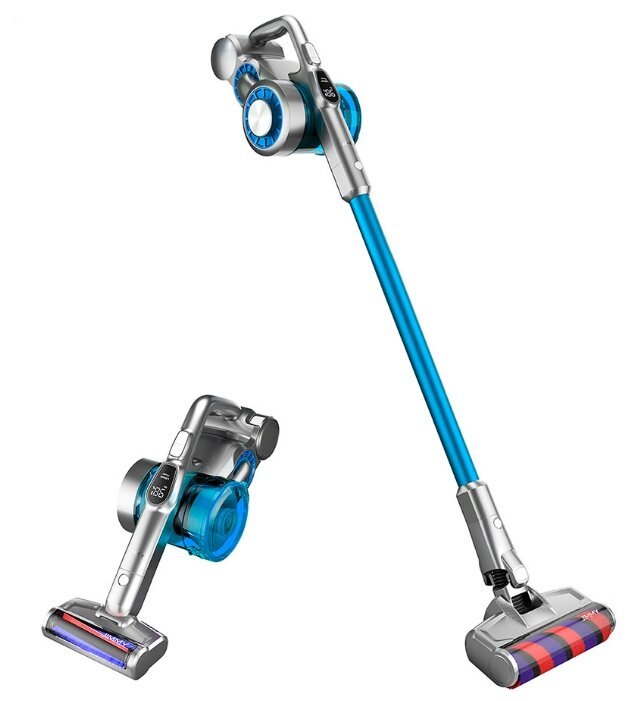 Беспроводной пылесос обладает мощным двигателем 500 Вт, его максимальная скорость достигает 100000 об/мин. Используется двойная циклонная система фильтрации, эффективность которой составляет 99,9 %. Всасывание 180 АэроВт осуществляется под давлением 24000 Па. Прибор оснащен встроенным светодиодным дисплеем и несколькими насадками в комплекте.