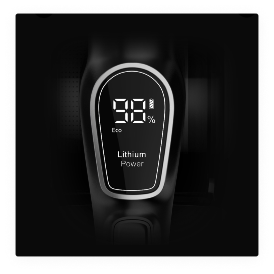 На корпусе пылесоса расположен светодиодный дисплей, который отображает уровень заряда аккумулятора и выбранный режим работы. Экран позволяет контролировать состояние пылесоса во время сухой уборки.