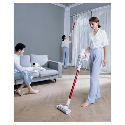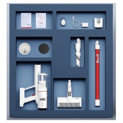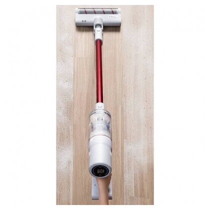 Беспроводной пылесос оснащен высокоскоростным бесщеточным двигателем, работающим со скоростью 80000 об/мин. Максимальная мощность всасывания составляет 18000 Па. Емкость встроенного аккумулятора – 2000 мАч. Время автономной работы может достигать 45 минут. Большая роликовая щетка позволяет тщательно очистить поверхность пола от загрязнений, а мебели – от пылевых клещей.