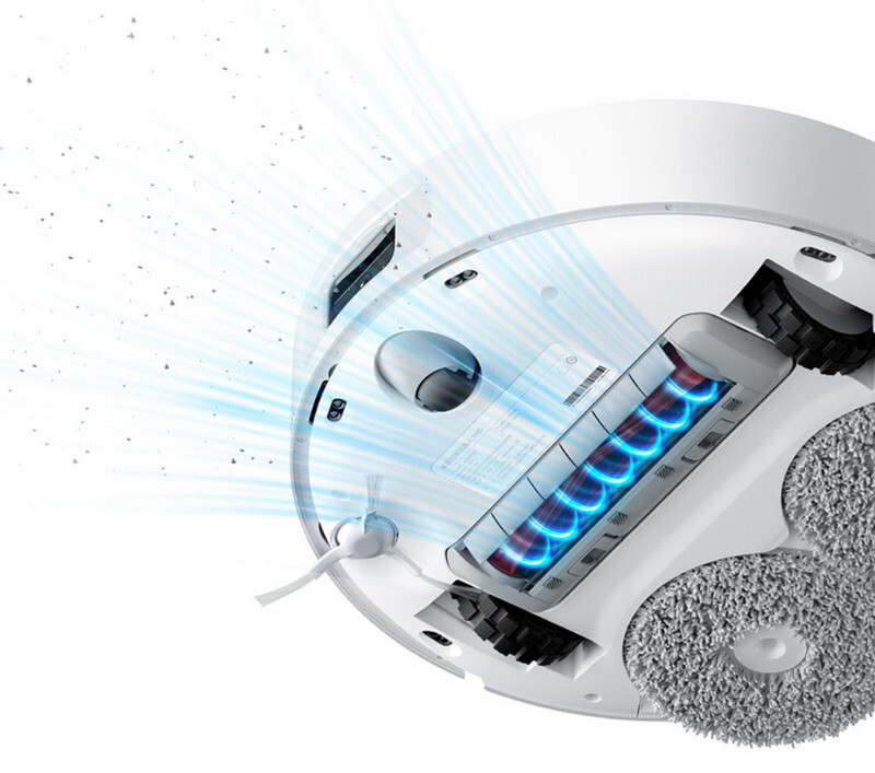 Робот-пылесос оснащён функцией прижимного вращения, которая плотно прижимает швабру к стенам и углам, эффективно очищая труднодоступные участки. Щётка имитирует ручное давление с частотой 180 оборотов в минуту, что обеспечивает высокую эффективность уборки даже по краям