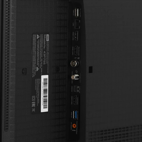 Модель выполнена в цельном корпусе с металлическими элементами и дополнительным усилением, благодаря чему телевизор стал на 14% тоньше. Минималистичный дизайн помогает ему гармонично вписываться в интерьер, придавая комнате аккуратность и современный стиль