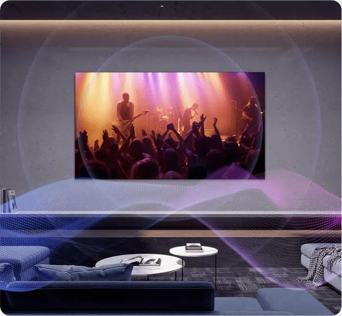 Dolby Atmos обеспечивает многомерный звук, преодолевая традиционное плоское звучание ТВ. Наслаждайтесь невероятной четкостью и яркостью звука.