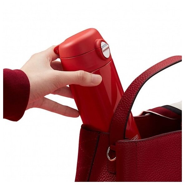 Компактной термокружкой удобно пользоваться всего одной рукой, удобная защелка позволяет быстро открыть крышку, не отвлекаясь от важных дел. Специально для защиты от проливания и случайного открытия, крышка горловины поворачивается более чем на 180°. Для органичного сочетания функции и дизайна у термокружки имеется особый механизм запирания, позволяющий открыть или закрыть крышку лёгким нажатием, при этом конструкция защищена от случайного открытия, так что Вы можете спокойно положить термокружку, например, в сумку. Элементы термокружки были отшлифованы для придания им гладкости и мягкости, чтобы она приятно лежала в руке, а каждый глоток приносил только радость.