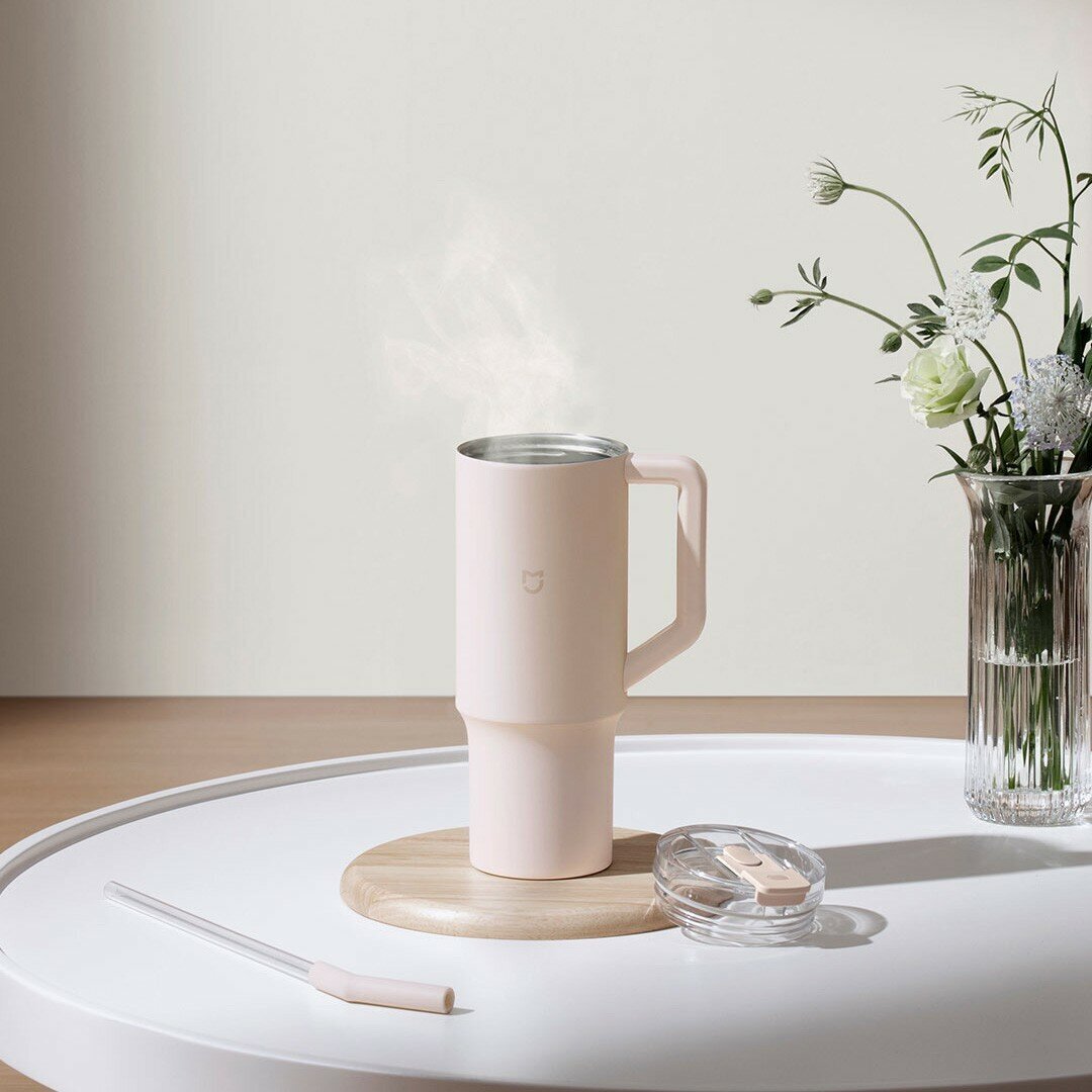 Термокружка Xiaomi Mijia Sippy Cup 1L (MJXGB01RM) — вместительная кружка-термос три в одном. Пить из нее можно через клапан, напрямую из кружки или через соломинку. Основание кружки сужено для того, чтобы ее можно было установить в подстаканник автомобиля. Кружка поддерживает температуру напитков на протяжении 6 часов, сохраняя горячие напитки теплыми, а ледяные холодными.