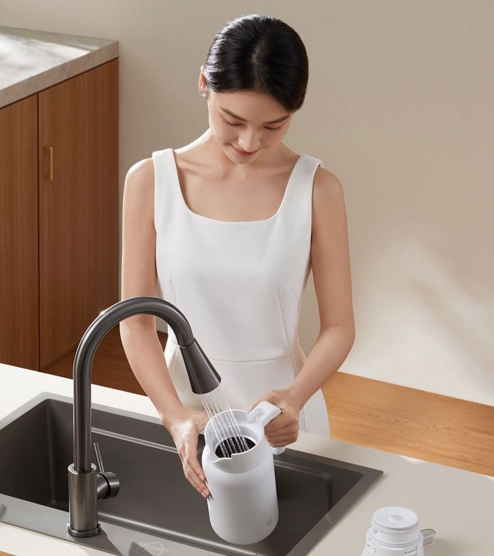 Дизайн с широким горлышком диаметром 71 мм обеспечивает легкость при наливании воды и удобство очистки.