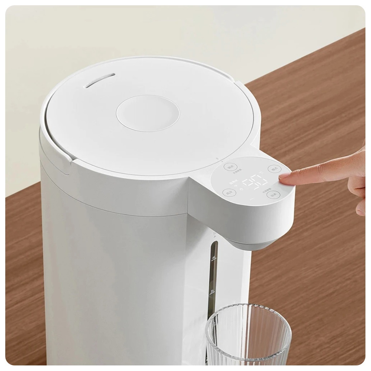 Термопот, идеальный спутник для вашей кухни. Его внушительный объем в 5 литров и мощность 1600 Вт обеспечивают быстрое кипячение воды, что эквивалентно 20 чашкам всего за 18 минут. Уникальная сенсорная панель позволяет вам точно настроить температуру воды от 40℃ до 90℃, и это делает этот термопот идеальным для различных напитков.