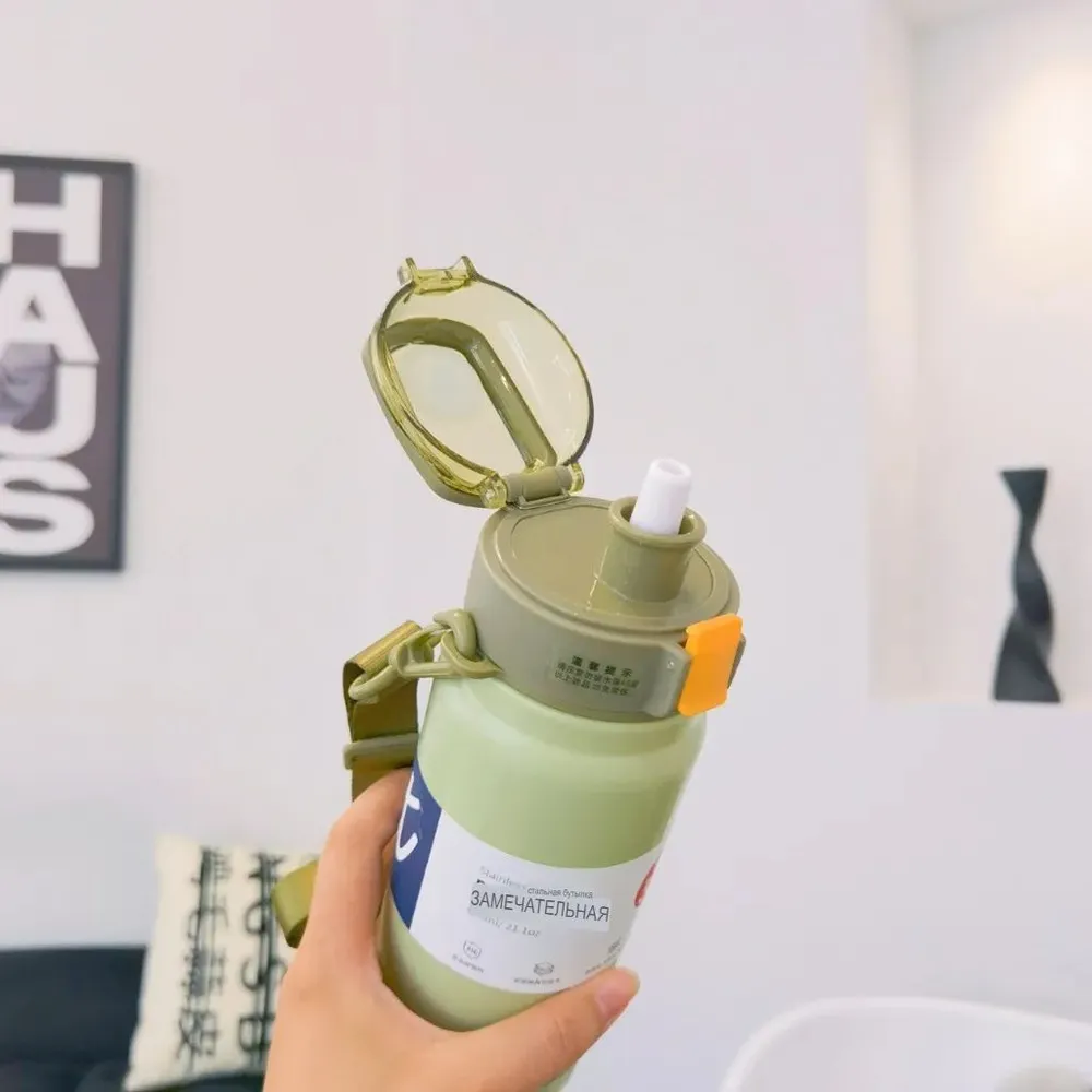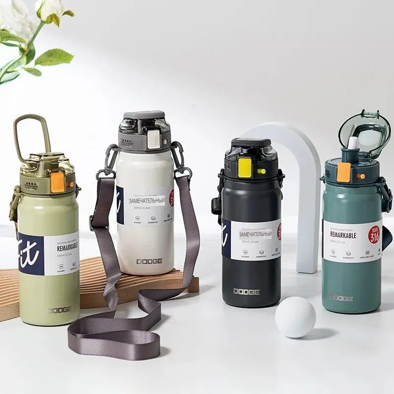 Двойная Стеновая Теплоизоляция из Нержавеющей стали 316SS / Портативный, С Широким Горлышком, Ручкой Большего размера, Откидной крышкой и Резиновым Основанием / В комплекте с соломой и регулируемым ремешком
