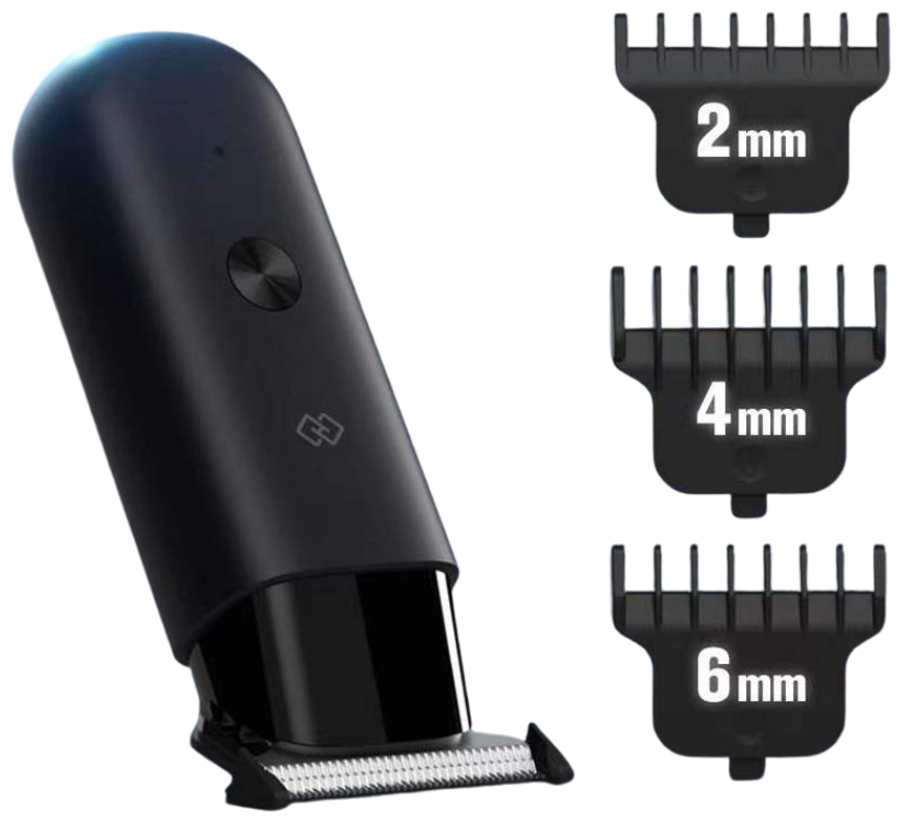 Xiaomi Huanxing Multi-Functional Mini Electric Clippers (EC101) Black - электрический триммер для стрижки волос и бороды размером всего 10 см. Прост в использовании, подходит для дома и путешествий благодаря USB-порту для зарядки. Закругленные лезвия и гребни плавно скользят по коже, не царапая ее. Маленький корпус, большая мощность - до 6200 об/мин. Уровень шума в помещении составляет 45 дБ. В комплекте набор сменных насадок 0 мм/2 мм/4 мм/6 мм, щетка для очистки лезвий, смазочное масло, провод для зарядки. Влагозащита - IPX7.