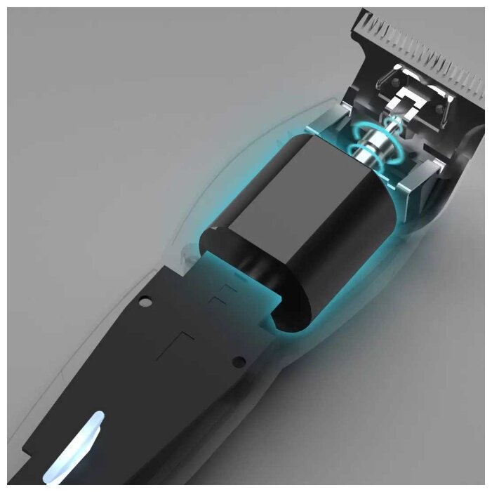 Триммер оборудован электродвигателем мощностью 10 Вт. Скорость работы достигает 7100 оборотов в минуту, что обеспечивает качественное и быстрое состригание даже самых густых волос.