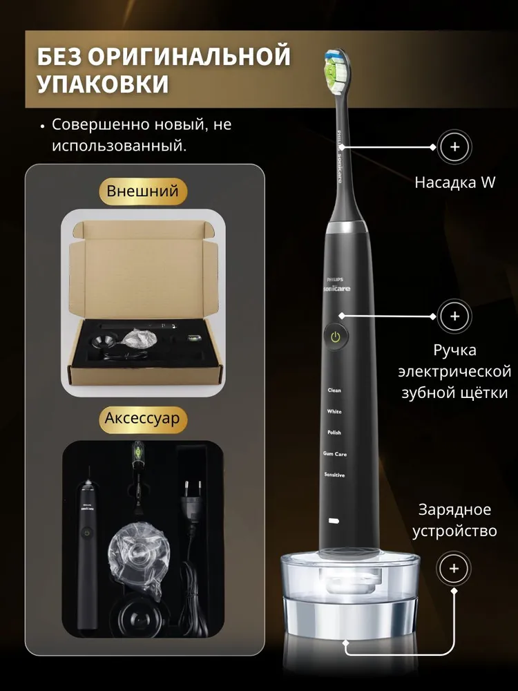 Электрическая зубная щетка Philips Sonicare DiamondClean, комплект насадок, дорожный футляр, стакан с зарядной базой