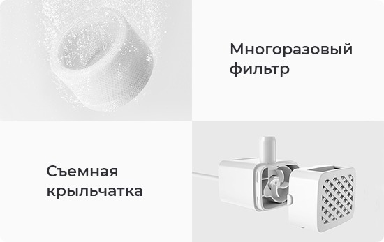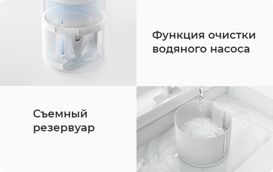 Увлажнитель оснащен функцией самоочистки водяного насоса от накипи. Кроме того все детали устройства легко снимаются для последующей ручной чистки. Например, резервуар можно полностью достать и промыть под краном. Фильтрующий элемент является многоразовым, достаньте его, хорошо промойте водой и высушите естественным образом. Съемная крыльчатка водяного насоса позволит легко промыть его изнутри.