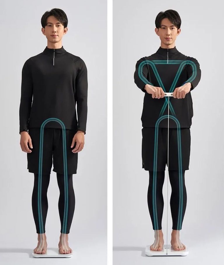 Mijia S800 оснащены 8 электродами на платформе и выносной рукоятке, обеспечивая комплексный анализ всего тела включая руки, туловище и ноги. Двухчастотная биоимпедансная технология использует высокочастотные и низкочастотные сигналы для измерения сопротивления внутриклеточной и внеклеточной жидкости. Точность измерений подтверждена высокой корреляцией со стандартом DEXA (коэффициент >0.97), что гарантирует профессиональную достоверность результатов.